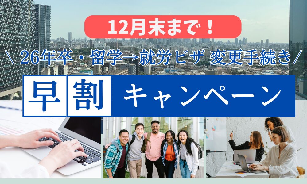 CATEGORY お知らせ 年末年始期間の休業のお知らせ 2025.12.17 お知らせ Akiko Ohkubo ネクステップ行政書士事務所 12月末まで!【26年新卒】留学→就労ビザ 変更手続き 早割りキャンペーン実施中! 2025.12.05 お知らせ Akiko Ohkubo ネクステップ行政書士事務所 お盆期間の休業のお知らせ(8月14、15日休みます) 2025.08.06 お知らせ Akiko Ohkubo ネクステップ行政書士事務所 GW期間の休業のお知らせ(5月2日休みます) 2025.05.01 お知らせ Akiko Ohkubo ネクステップ行政書士事務所 【4/1~】入管の申請手数料が変わります 2025.02.03 お知らせ Akiko Ohkubo ネクステップ行政書士事務所 年末年始期間の休業のお知らせ 2024.12.11 お知らせ Akiko Ohkubo ネクステップ行政書士事務所 12月末まで!【25年新卒】留学→就労ビザ 変更手続き 早割りキャンペーン実施中! 2024.11.30 お知らせ Akiko Ohkubo ネクステップ行政書士事務所 【2024年12月】無料相談日のご案内 2024.11.30 お知らせ Akiko Ohkubo ネクステップ行政書士事務所 【2024年11月】無料相談日のご案内 2024.10.28 お知らせ Akiko Ohkubo ネクステップ行政書士事務所 【2024年9月】無料相談日のご案内 2024.09.03 お知らせ Akiko Ohkubo ネクステップ行政書士事務所 もっと見る