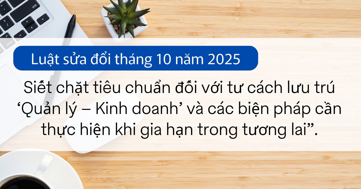 Vào ngày 16 tháng 10 năm 2025, các tiêu chuẩn cấp tư cách lưu trú “Quản lý – Kinh doanh” đã được sửa đổi đáng kể. Đây là một thay đổi cực kỳ quan trọng, không chỉ ảnh hưởng đến những người nộp hồ sơ xin mới, mà còn liên quan trực tiếp đến việc gia hạn visa của những người đang lưu trú tại Nhật với tư cách “Quản lý – Kinh doanh”.